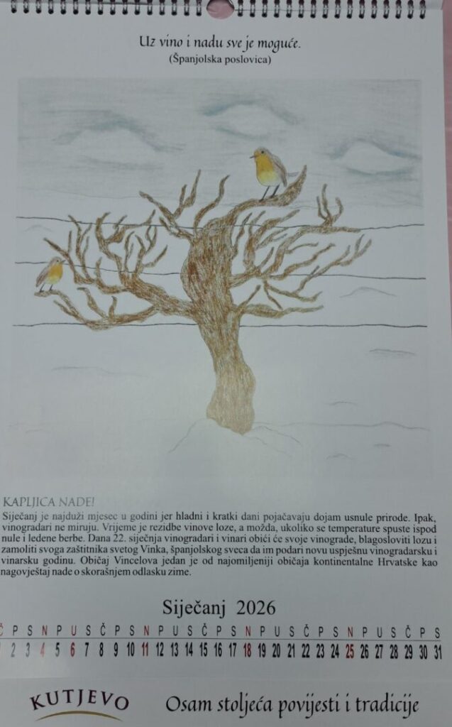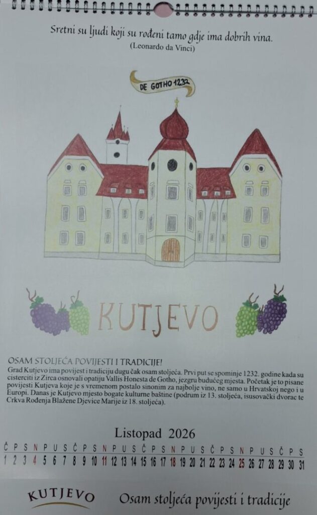 Mentorica dr. sc. Mihaela Markovac je sa svojim učenicama Ivanom Marković i Anom Marinclin provela zajednički projekt s Kutjevom d.d. te su izradile kalendar za nadolazeću 2026. godinu. Kalendar je nastao u suradnji naše škole s Kutjevom d.d, a nosi naziv Priče o vinu. Ovaj projekt omogućio je učenicima da pokažu svoje umjetničke i organizacijske vještine, ali i da kroz zajednički rad razvijaju odgovornost, suradnju i kreativno razmišljanje.