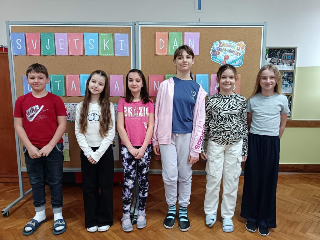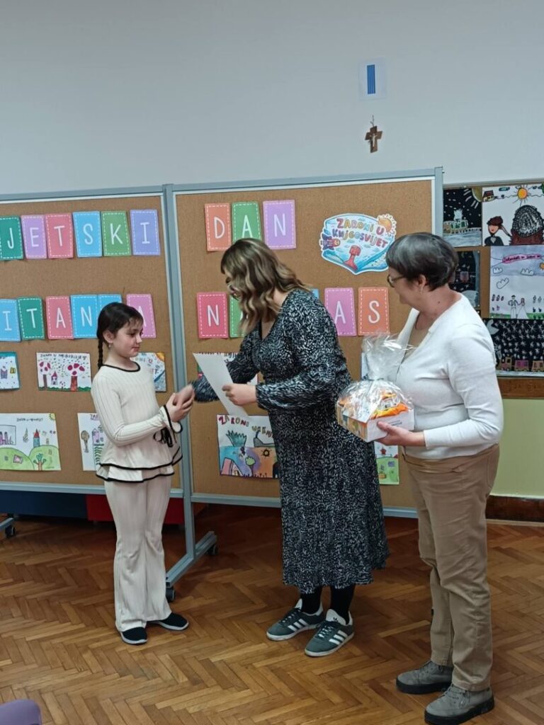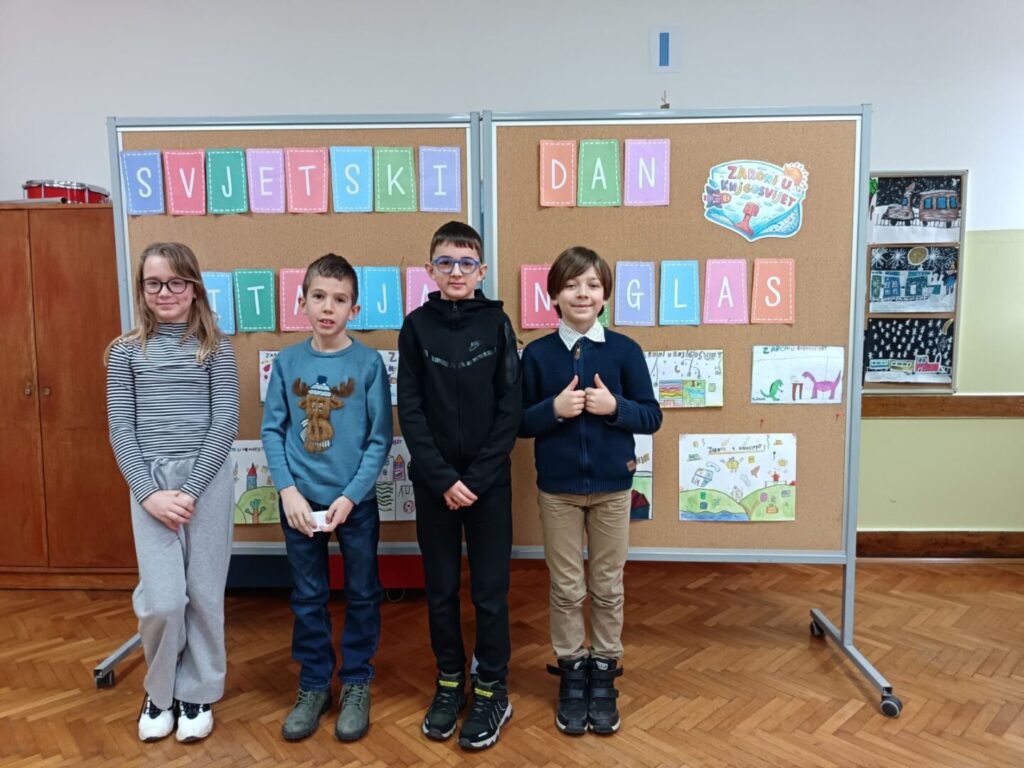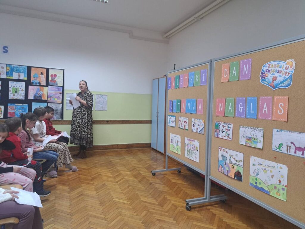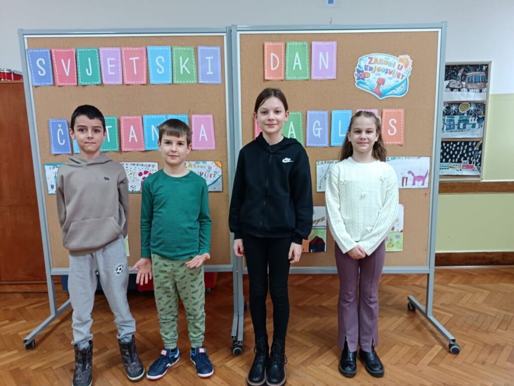 Povodom obilježavanja Svjetskog dana čitanja naglas, u našoj je školi održano natjecanje u čitanju naglas u sklopu školskog projekta „Zaronimo u knjigosvijet“. Zajednička aktivnost projektnih partnera okupila je učenike od 1. do 4. razreda matične i područnih škola koji su pokazali svoje čitalačke vještine, izražajnost i ljubav prema pisanoj riječi. Natjecanje smo podijelili u dvije kategorije: 1. i 2. razred te 3. i 4. razred.