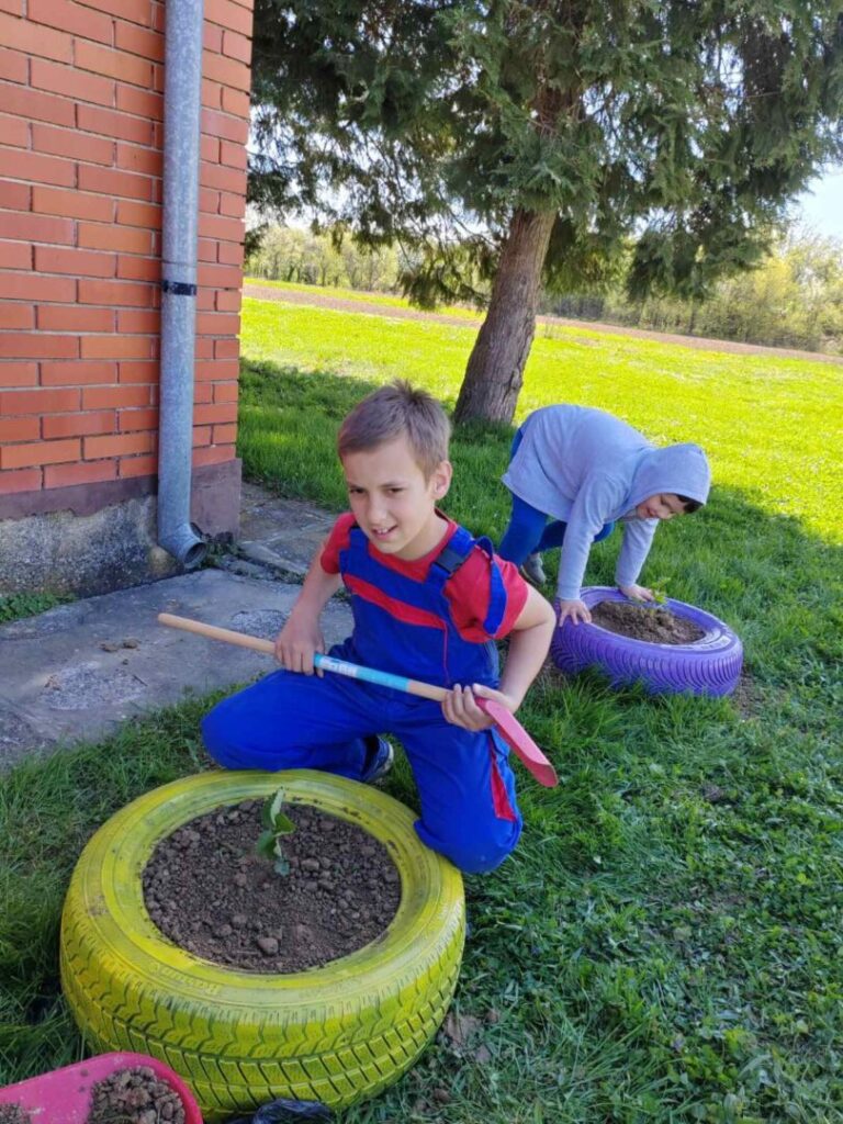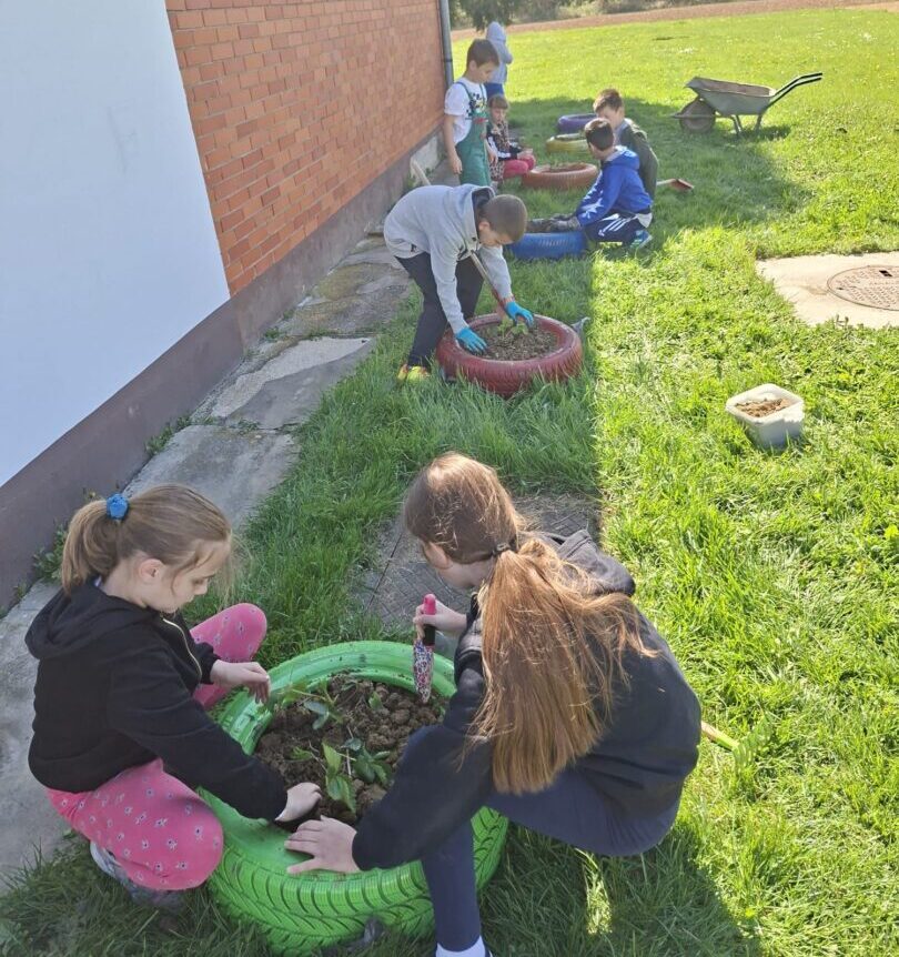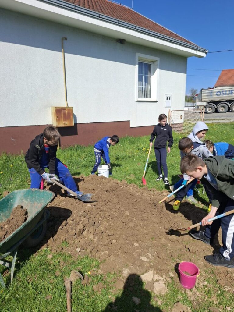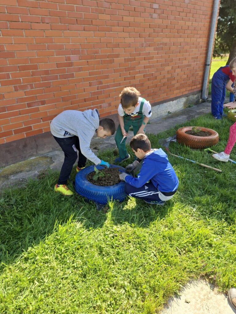 Učenici PŠ Bektež su uređivali okoliš svoje male škole. Vozili su zemlju, usitnjavali je i punili gume zemljom kako bi ih pripremili za sadnju jagoda i cvijeća. Pomagali su jedni drugima i surađivali. Tijekom sadnje su uočili glavne dijelove biljke i nabrojili koje sve uvjete biljka mora imati za pravilan rast i razvoj. Posebno se zahvaljujemo obitelji Treger koji su nam dali sadnice jagoda i tati koji je uložio puno truda i vremena da nam pribavi potrebnu zemlju, gume i oboji gume. Učenici su bili vrijedni, naučili su nešto novo, ponovili ono što već znaju, a pritom se dobro i zabavili.